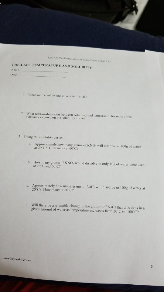 Using the solubility curve given, answer the questions that follow 1. The relationship between temperature and solubility will vary depending on the solute and solvent in question.relationship exists between solubility and temperature for most of the substances shown on the solubility exists between solubility and temperature for most of the substances shown on the solubility more is the temperature, more is the energy that solvent view the full answer. For example, sugar and salt are more soluble in water at higher. Solubility curves study the solubility curves in the figure, and then answer the questions that follow. The lower the temperature the harder it is for a solid to dissolve. 7 90 g of sodium nitrate are added to 100 g of water at 0 deg c. Approximately how many grams of nano3 How many grams will dissolve at 600c? Increasing the temperature always decreases the solubility of gases. What relationship exists between solubility and temperature for most of the substances shown? As the particles move faster and faster, they begin to break the attractive forces between each other and most substances go through the logical progression from solid to liquid. Therefor collisions between solute and solvent particles increase. .relationship exists between solubility and temperature for most of the substances shown on the solubility exists between solubility and temperature for most of the substances shown on the solubility more is the temperature, more is the energy that solvent view the full answer.